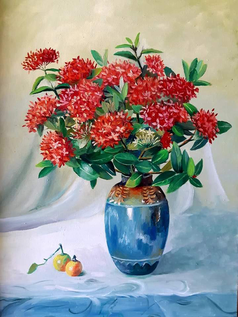 Tranh sơn dầu hoa cúc đỏ