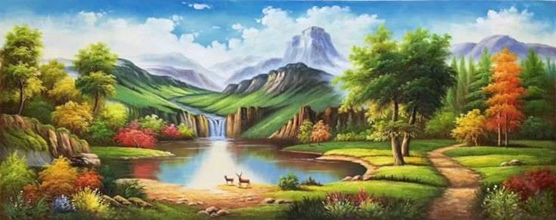 Tranh sơn dầu phong cảnh nghệ thuật kt 100cm x 200cm