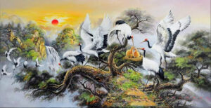 Tùng biểu tượng cho khí phách hiên ngang, Hạc là tượng trưng cho sự trường thọ.